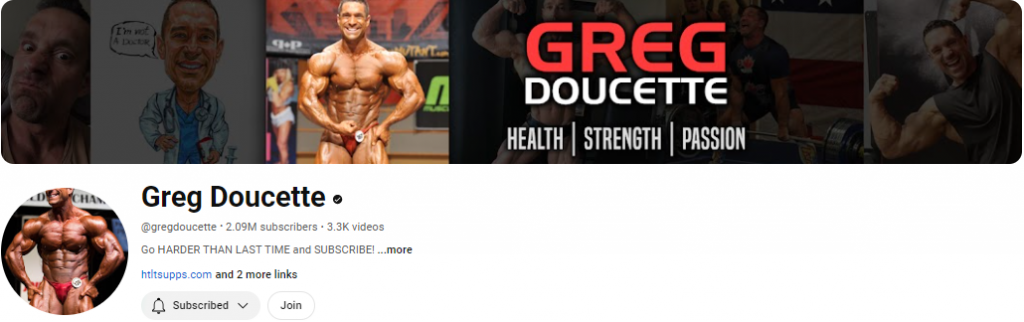 Greg Doucette, a world record-holding powerlifter and IFBB pro bodybuilder, is known for his high-pitched voice, and his straight-talking style. His channel covers a wide range of topics, including training tips, diet advice, and critiques of other fitness influencers. Greg’s candid approach and wealth of experience make his advice both practical and relatable. His popular series, “Harder Than Last Time,” emphasizes progressive overload and sustainable diet practices. But for entertainment alone his “Natty or Not” videos are hard to beat.